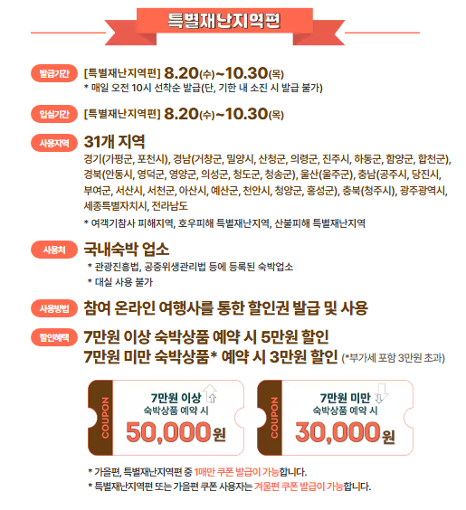 - 겨울편: 할인 폭이 확대되어 숙박요금 구간과 상관없이 최대 5만 원 할인 적용