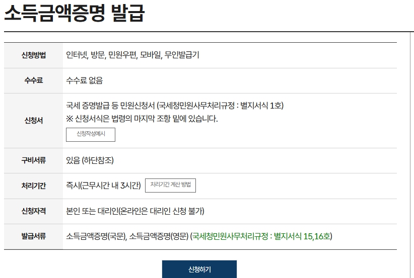 소득금액증명원 발급 요약