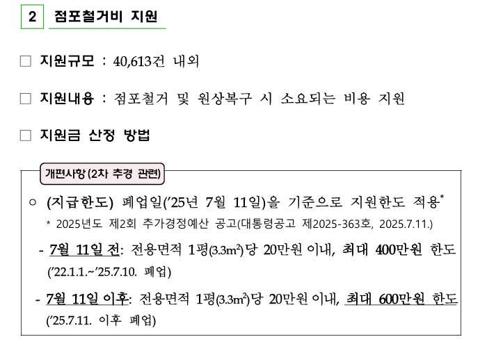 - 폐업예정 소상공인 (2025년 7월 11일 이후는 최대 600만원)
