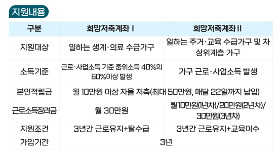 희망저축계좌Ⅱ 자격조건 및 신청대상