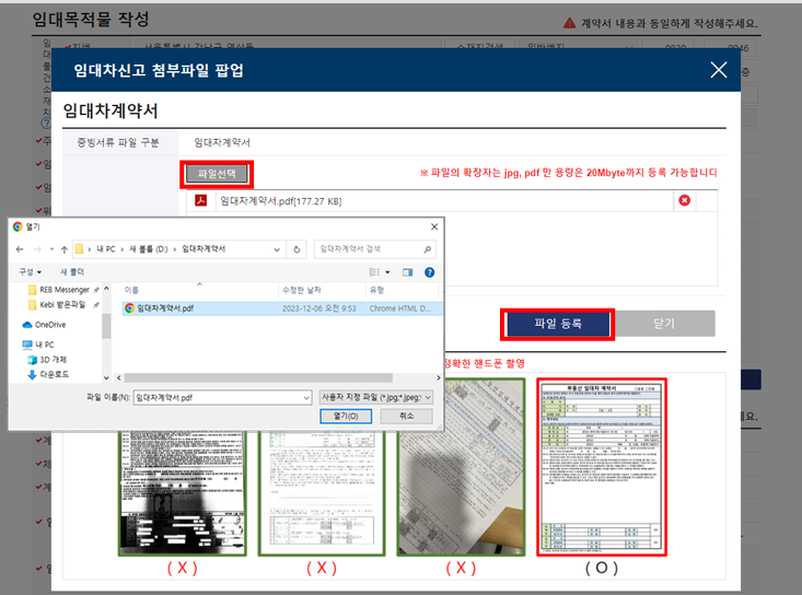 PDF, JPG, PNG 등 형식의 계약서를 첨부해야 합니다.