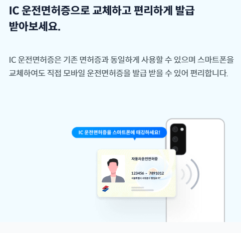 - 별도 IC칩 운전면허증 없이도 신속한 발급 가능