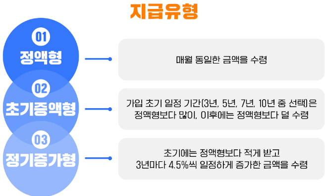 - 정기증가형: 3년마다 지급액이 약 4~5%씩 상승. 장기 인플레이션 대응.