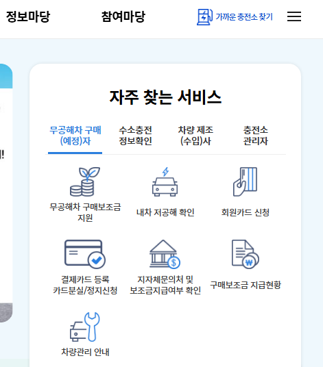무공해차 통합 누리집에서 제공하는 주요 서비스
