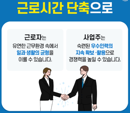 - 소정근로시간 단축: 가족 돌봄, 학업, 건강관리, 은퇴 준비 등이 필요한 근로자가 일정 기간 근로시간을 줄이는 경우