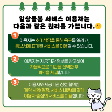 - 일상지원: 장보기, 은행 방문 등 외출 동행 및 이동 보조
